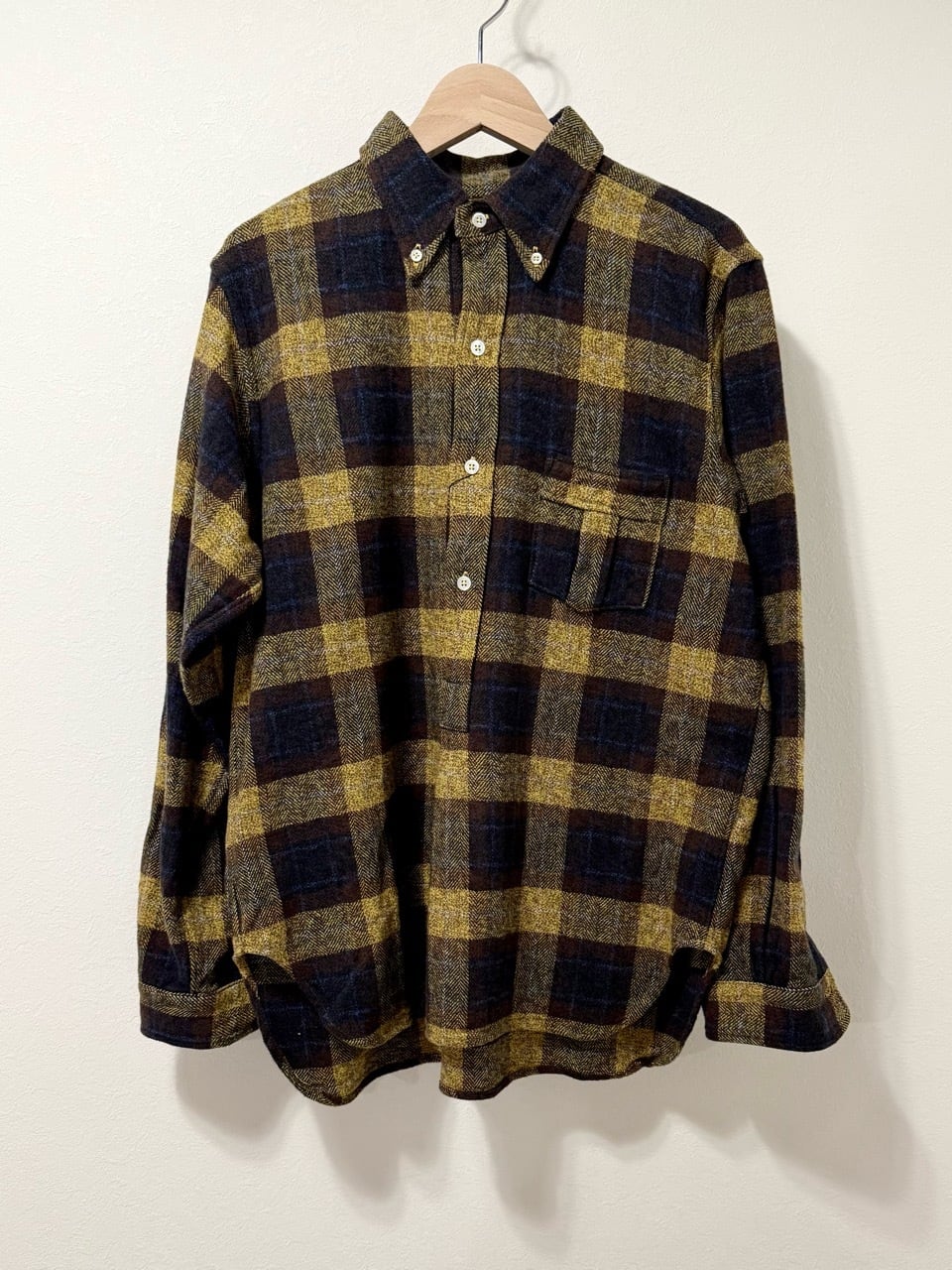 アメリカ老舗ドレスウエアブランドのビンテージ・プルオーバーB.Dシャツを基に作られたこのシャツは、細部にクラシックな魅力を感じさせる一着です。