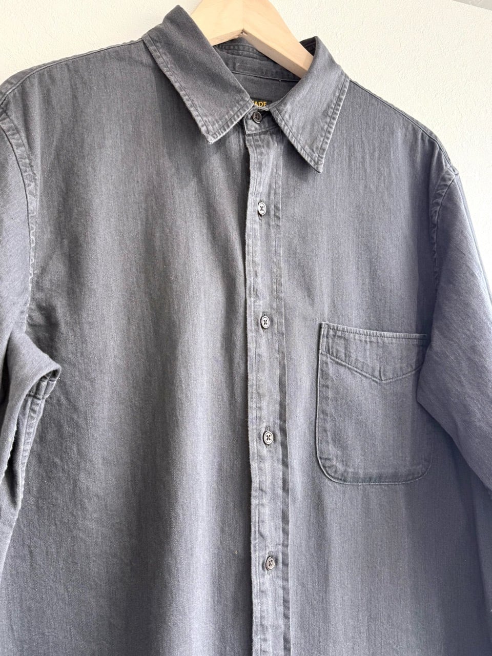 ワークシャツのディテールとドレスシャツのような縫製をブレンドすることで、デイリーなデニムシャツとしてジャケットのインナーにも使えるよう意識されて作られています。
