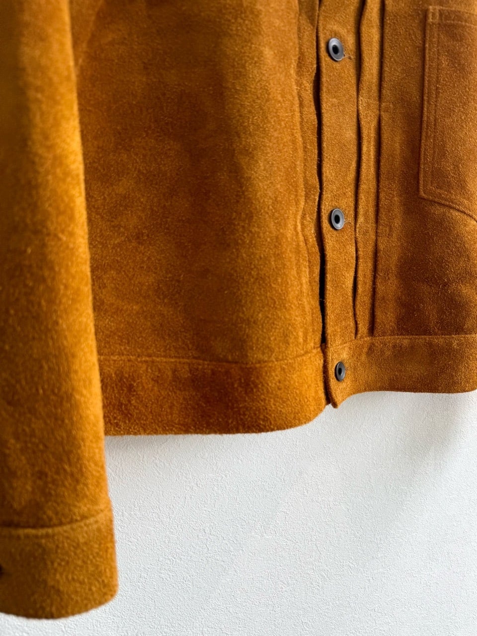 70’sのスウェードジャケットを参考に毛足がランダムに立つように粗目の処理で仕上げ、