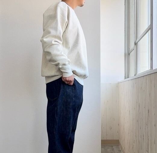 程よい厚みと抜群の着心地が魅力のスウェットで、太めのパンツにも細めのパンツにも合わせやすいバランスの良いシルエットが特徴です。カジュアルコーデはもちろん、外しアイテムとしてきれいめスタイルにもマッチ。幅広い着こなしに対応できる、汎用性の高い一着です。