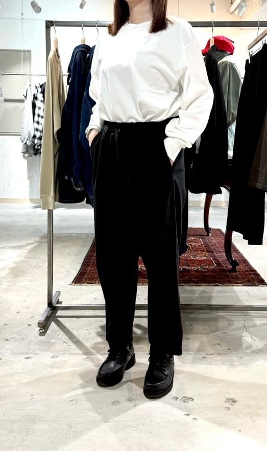 ウエストゴム仕様でイージーに穿ける、ストレスフリーな一本です。短めの丈感で足元がすっきり見えるデザインが特徴。
