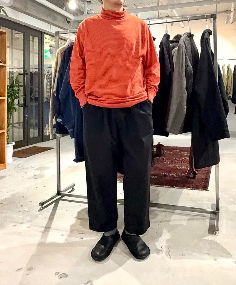 シンプルながら存在感のある着回し力抜群のタートルTシャツです。