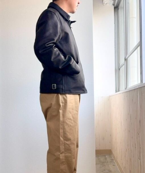 50年代のスポーツジャケットをデザインソースに、オリジナルの鞣しの牛革を使用したショート丈のシングルジャケットです。