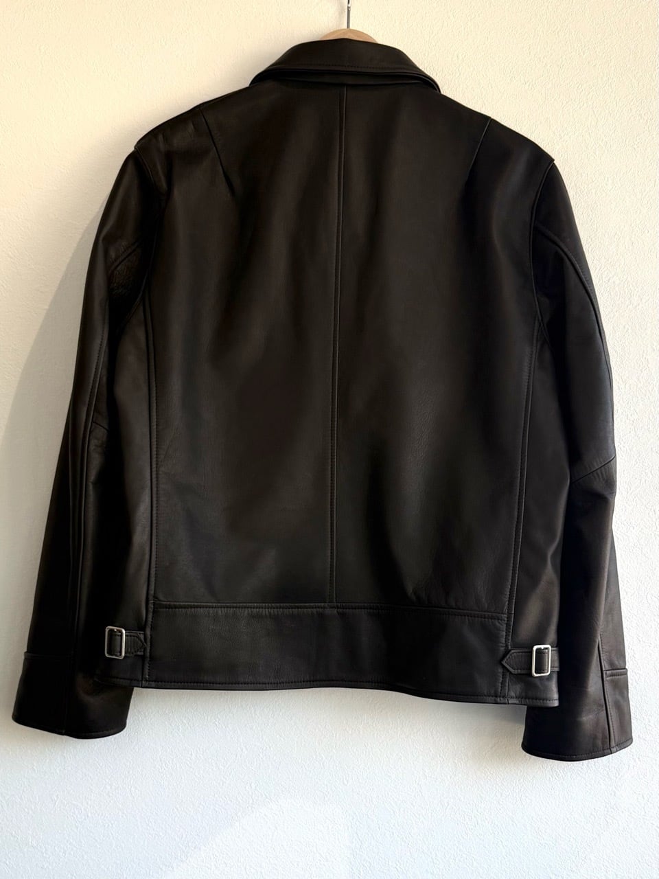 クセのないミニマルなデザインで、レザージャケットに馴染みのない方でも取り入れやすいバランスに仕上げられています。