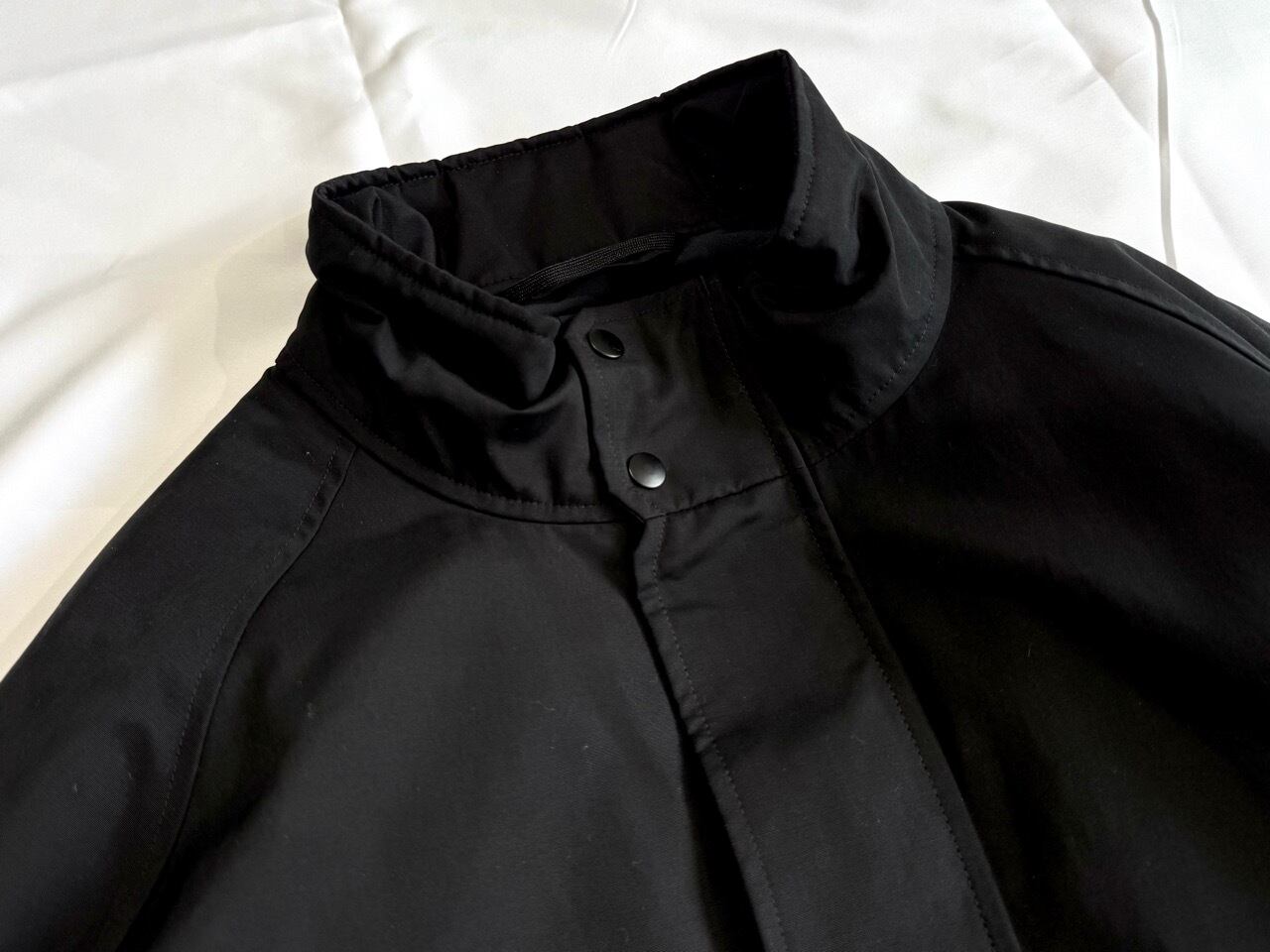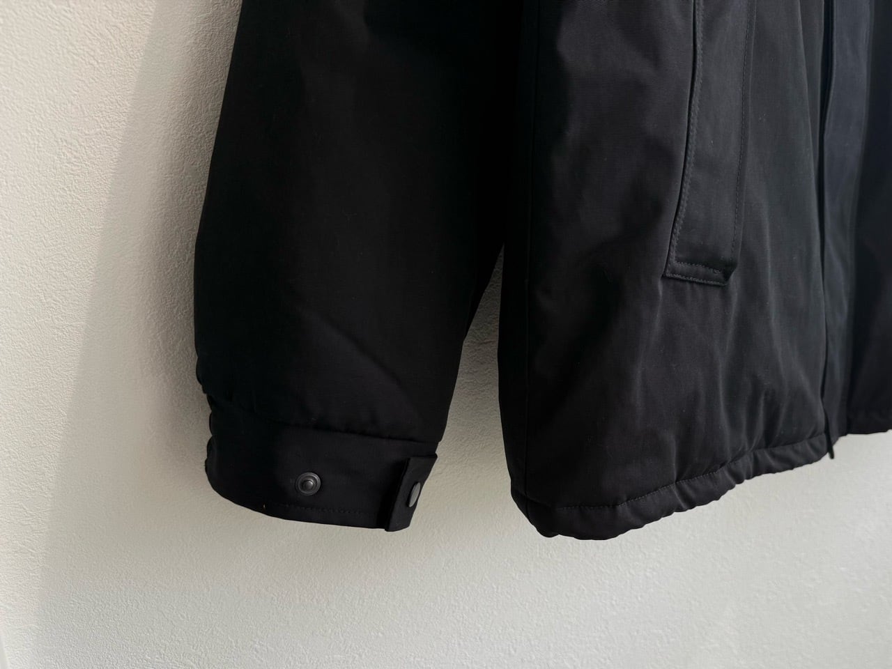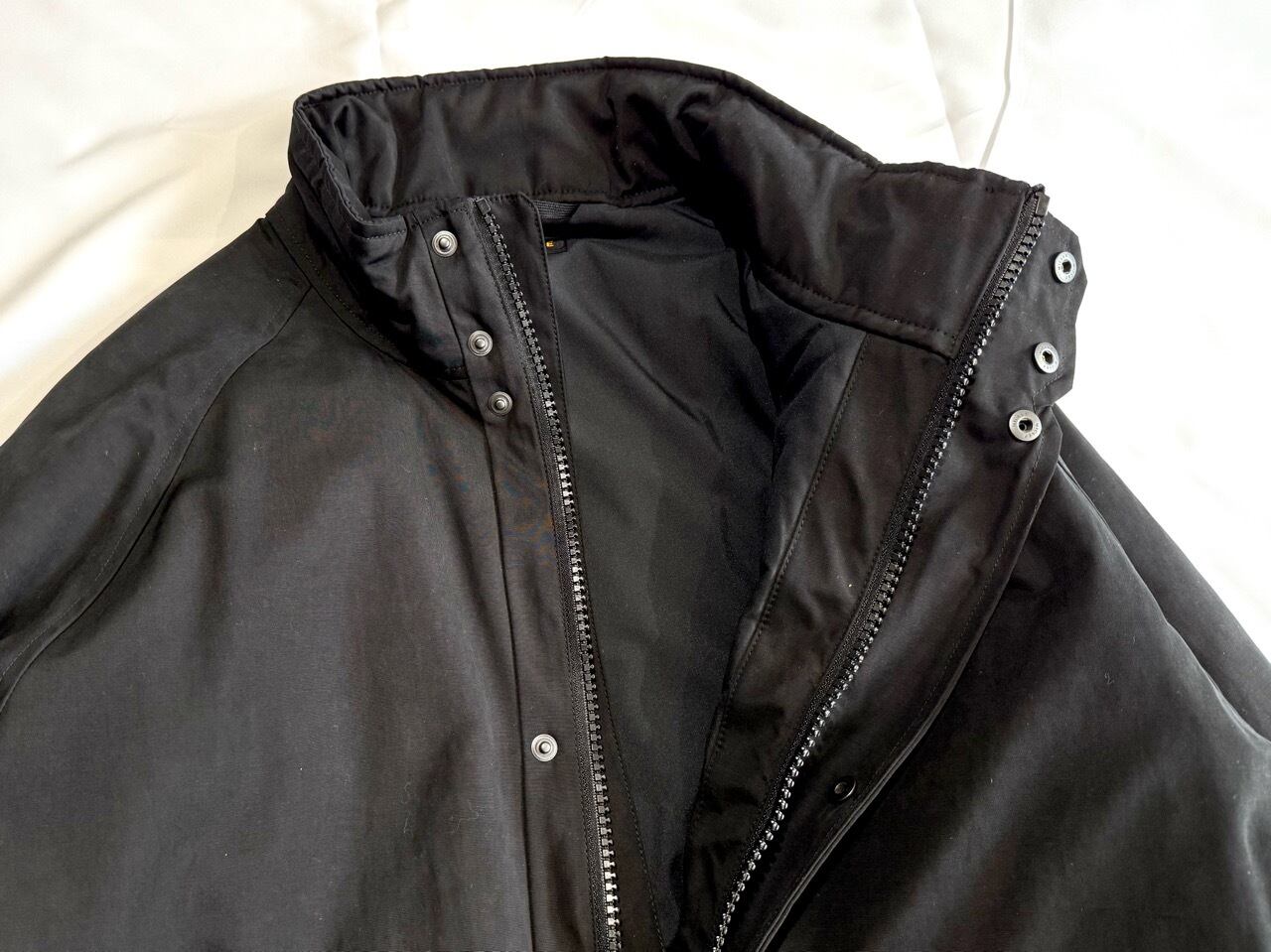 フロントは2WAY ZIP+比翼仕立てのスタンドカラー、腰にはフラップ付きのハンドウォーマーポケットが付きます。