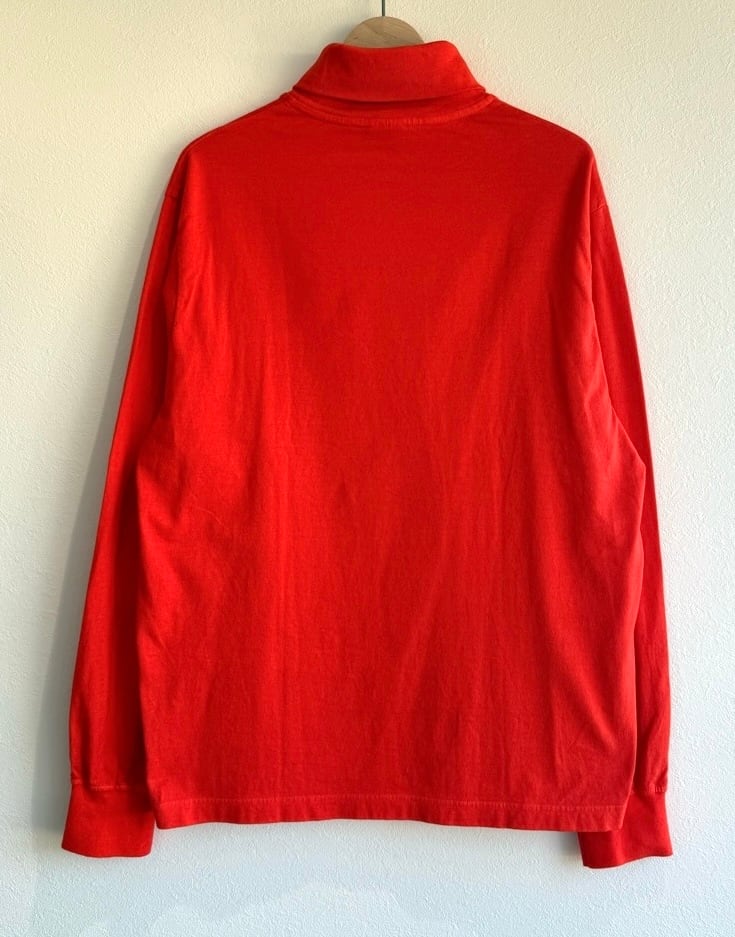 インナーにもアウターにも使い易い程良い厚みのベーシックTシャツ。毎年シーズナルカラーを更新・提案する製品染めモデルです。 タートルネックは適度なゆとりを持たせたシルエットです。