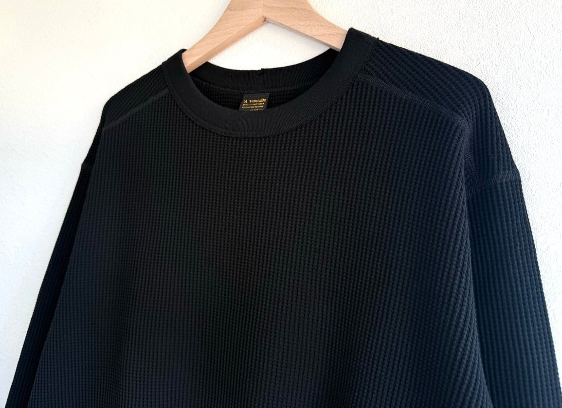 [AVONTADE] Big Waffle Crew Top VTD-0637-CS アボンタージ ビッグワッフルクルートップ black