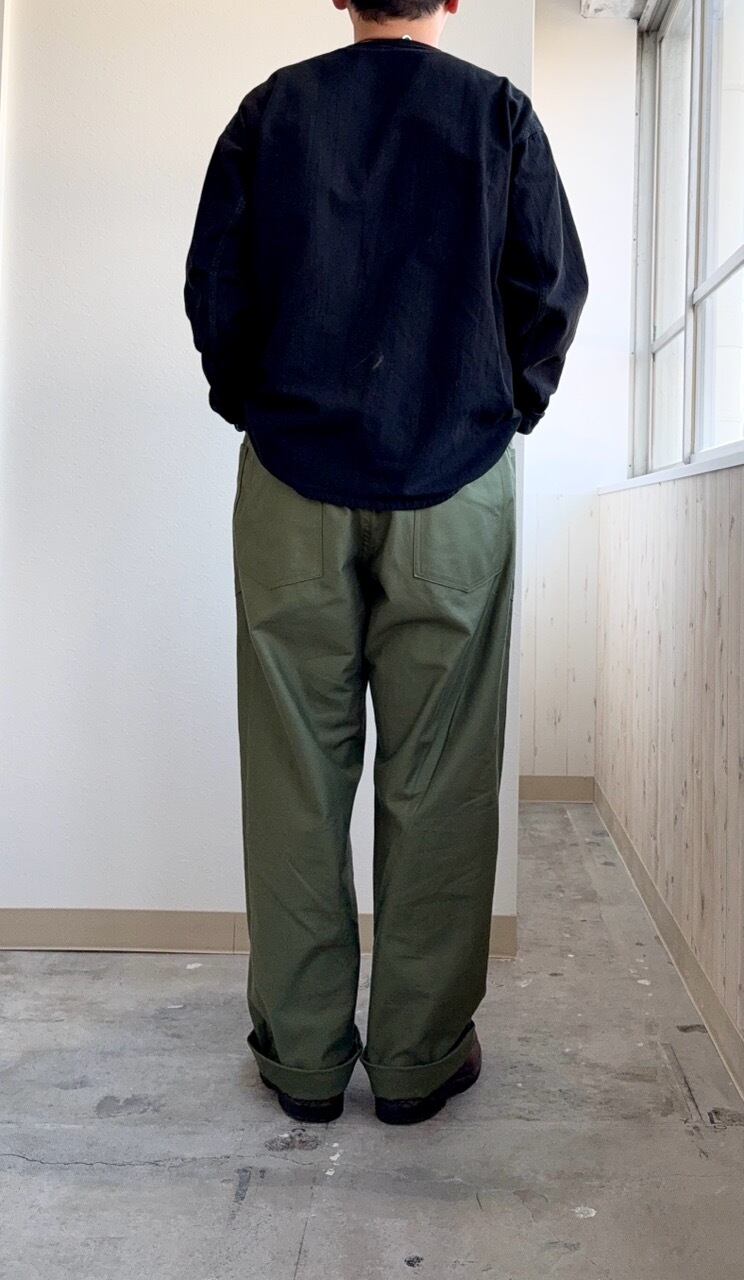 無骨で味わいのある バックサテン生地を使用しており、着込むほどに風合いが増していく一本です。