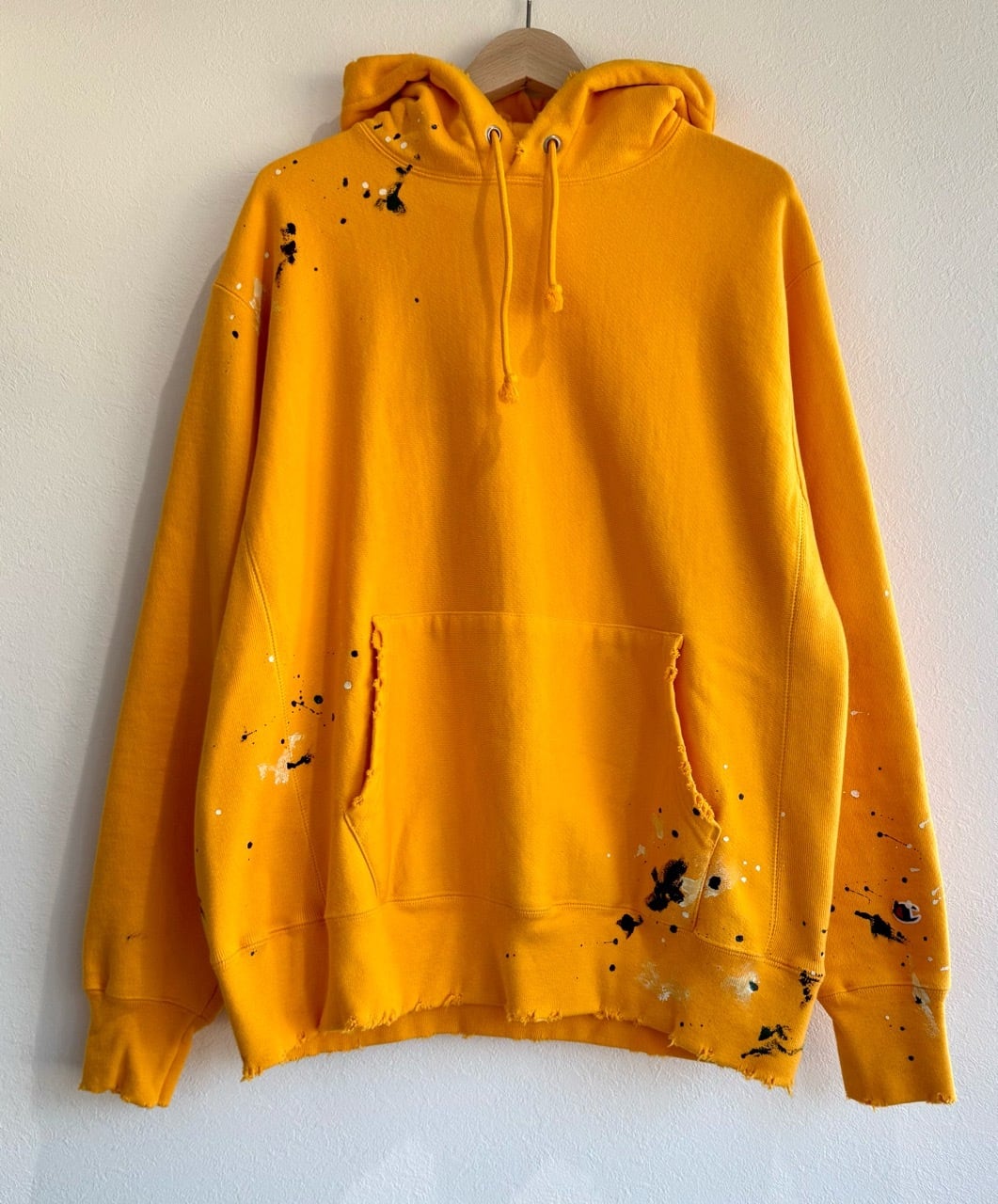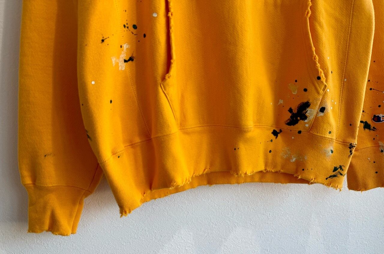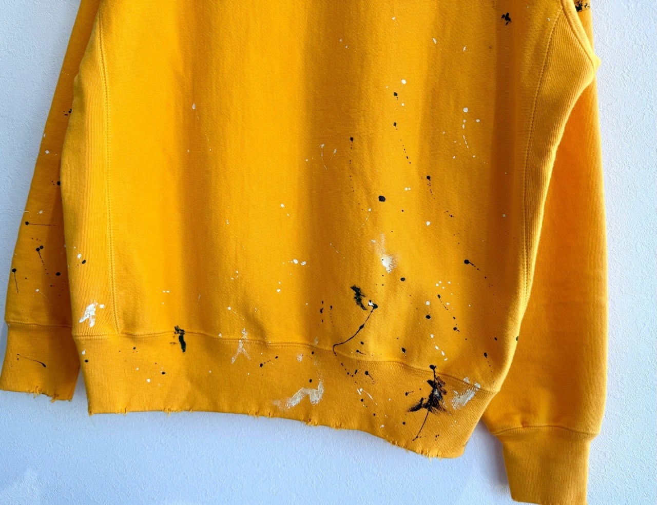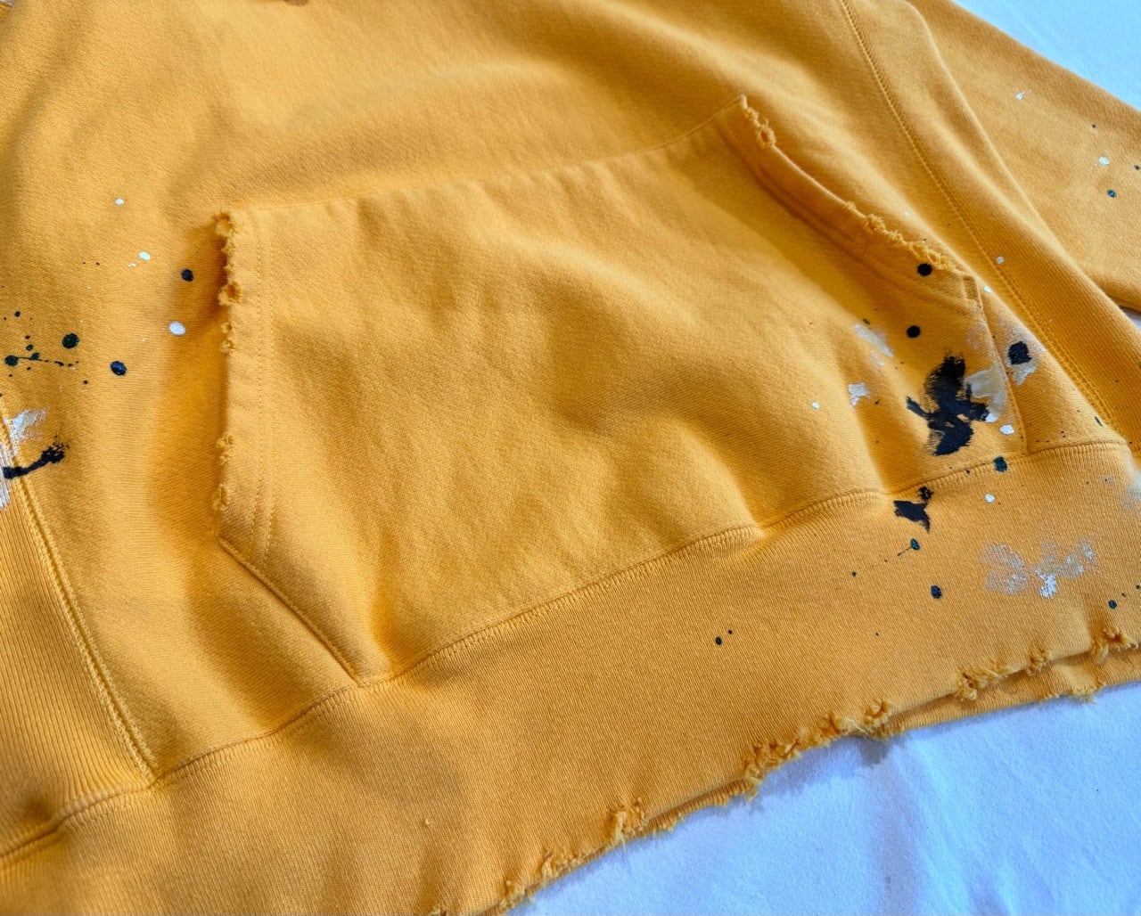 [CHAMPION] US企画 ペンキ、ダメージ加工 チャンピオン REVERSE WEAVE HOODIE yellow