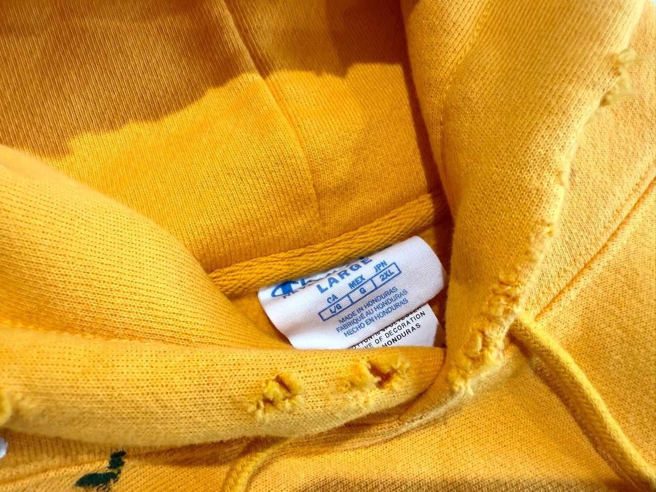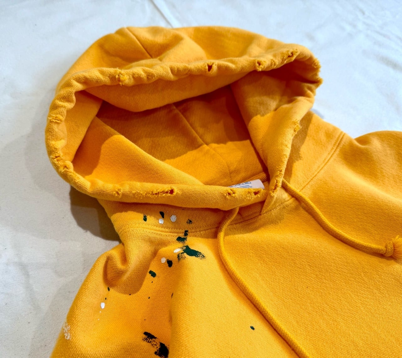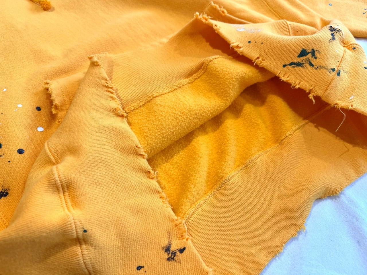 [CHAMPION] US企画 ペンキ、ダメージ加工 チャンピオン REVERSE WEAVE HOODIE yellow