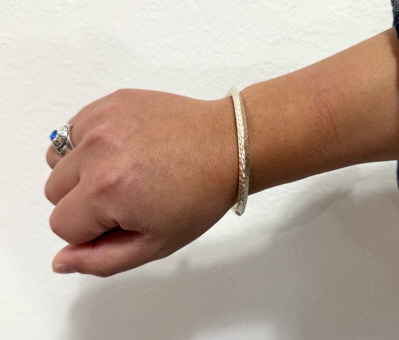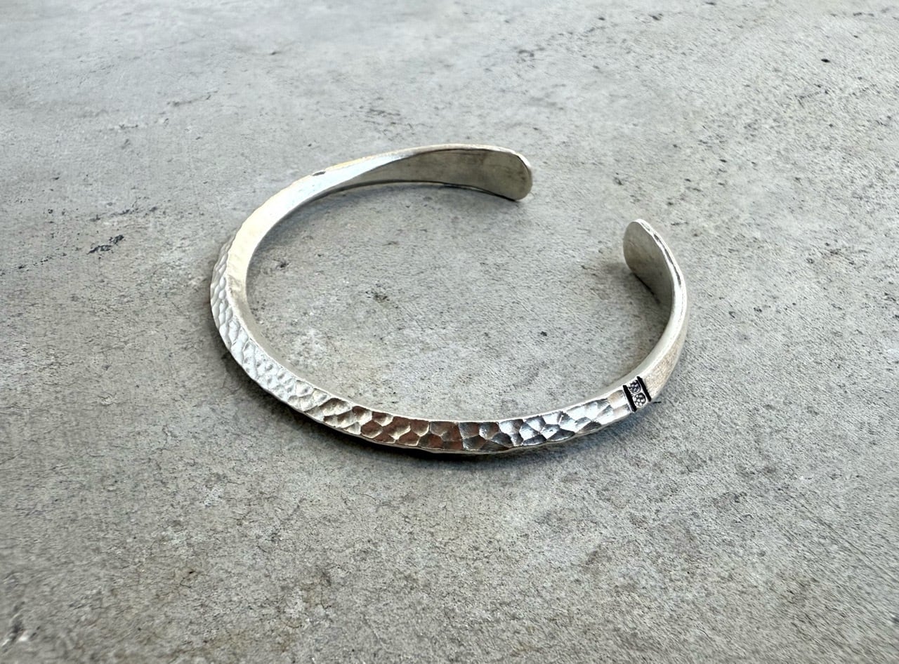 1つで着けても雰囲気があり、ほかの シルバーバングル や ブレスレット と重ね付けしても美しくまとまる万能デザインです。