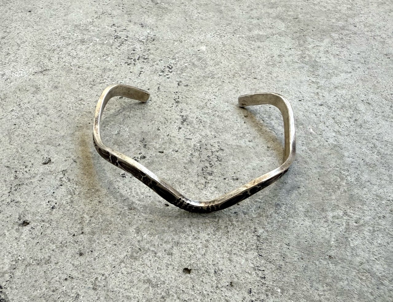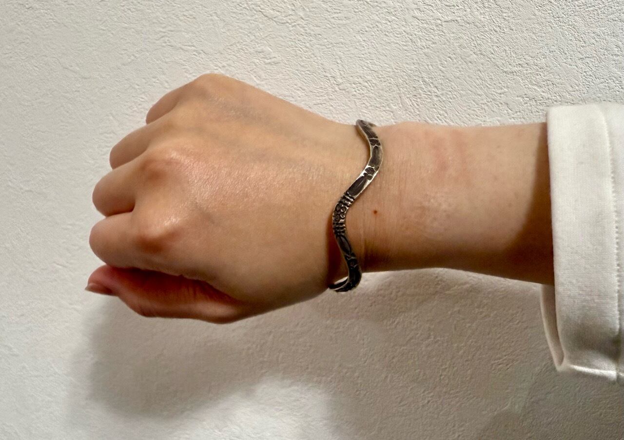 緩やかなウェーブラインで形作られた、独特の表情が魅力の カレンシルバー バングル。
