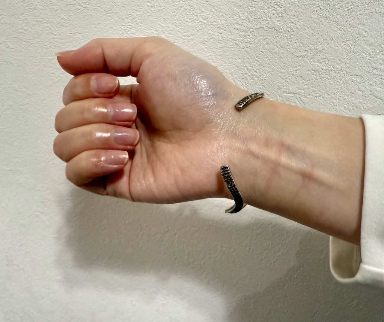 ほかの シルバーブレスレット や バングル と重ね付けしてもバランスよく馴染みます。