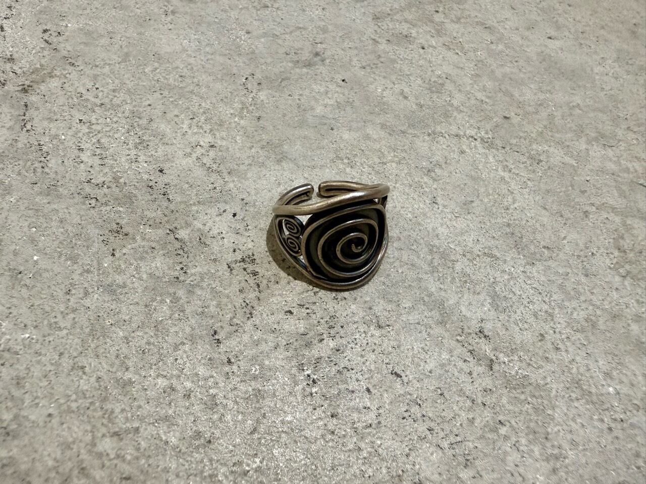 リング全体に大きく入った渦巻き模様が印象的で、シンプルながらも存在感のあるデザインが特徴です。
