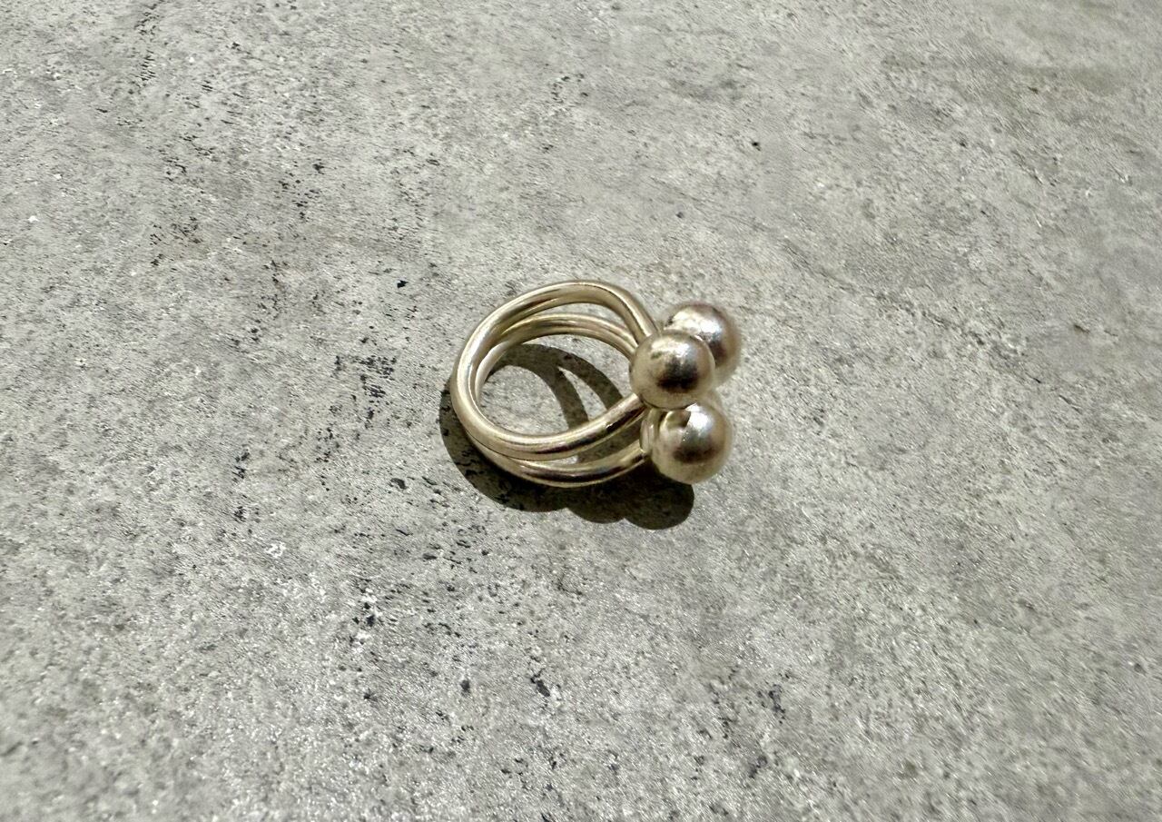 フロントに並んだ4つのボールモチーフが目を引き、リング部分は2連構造になった存在感のあるデザインが特徴です。