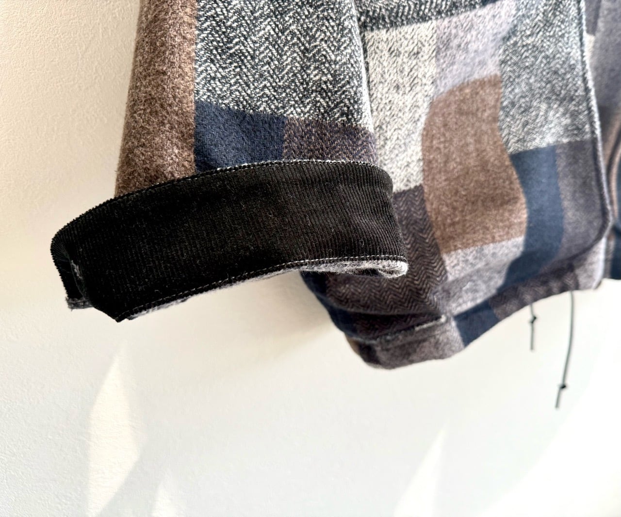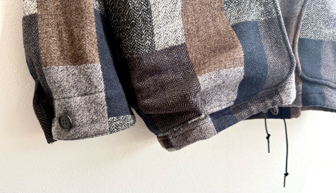素材には、コットンツイード素材のパッチワークチェック生地を採用。
