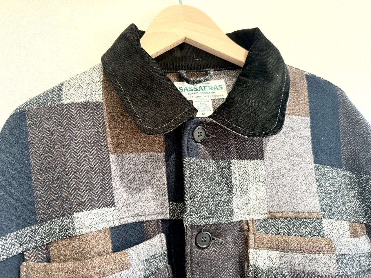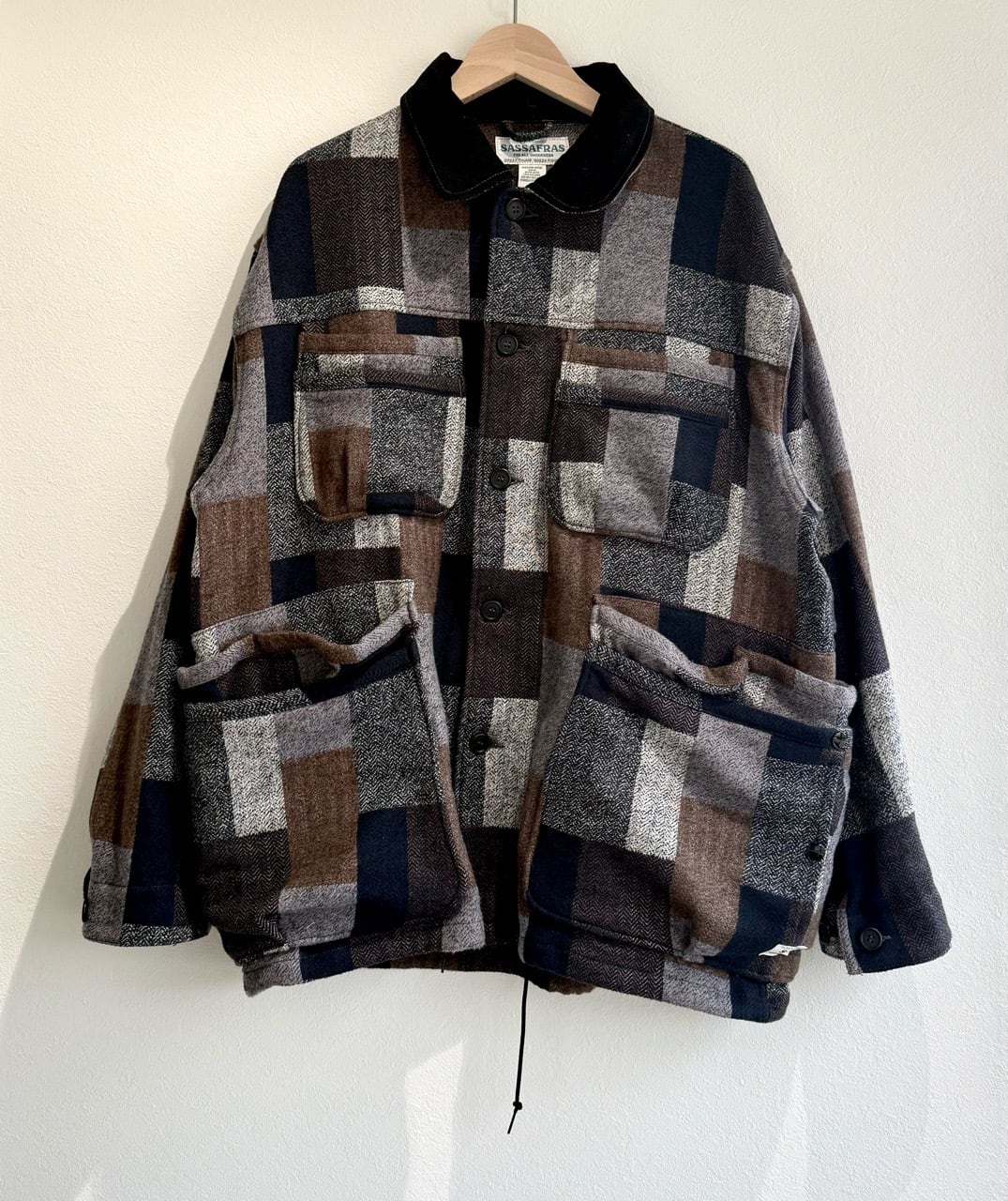 [SASSAFRAS] overgrown warden jacket cotton tweed patch check ササフラス オーバーグロウンワーデンジャケット パッチチェック